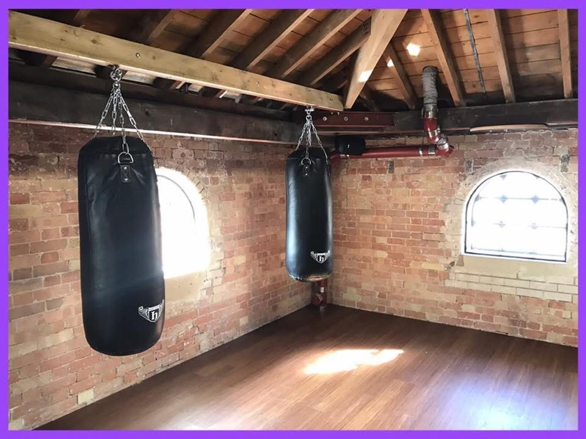 The main gym space being accessed on the upper floor also incorporated a split tier, with functional training on a raised platform, again retained from the original building.