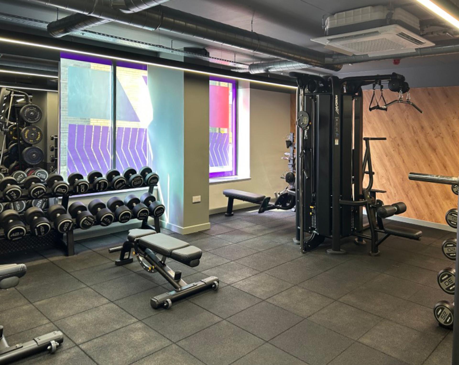 Due to the building's location beneath residential apartments and ownership by the local council, the project required strict compliance with mechanical, acoustic, and local energy efficiency standards. A key requirement was connecting bathroom plumbing to the site’s district heating system, a non-standard request for gym builds. All MEP services, air conditioning, fresh air ventilation, and extraction, needed pre-lease approval, and coordination with multiple stakeholders, including the local authority, their utility partners, and project architects, was essential. The technical design had to align with both the Anytime Fitness brand guidelines and the broader requirements of the development scheme.