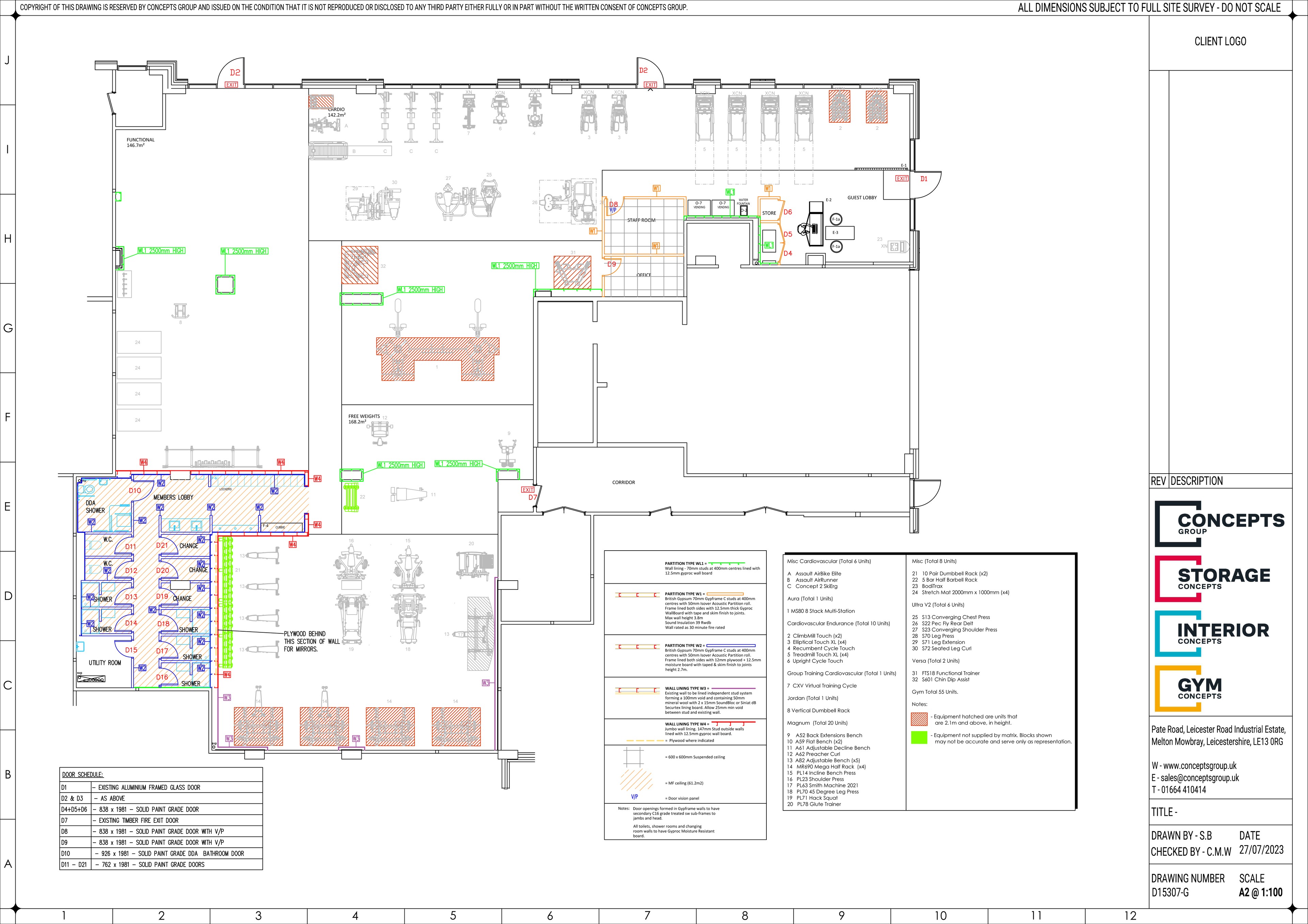 Gym Concepts work with an AutoCAD system to produce our high quality, detailed and scaled drawings to our clients to provide them all details of the works we will be carrying out as part of our design package.