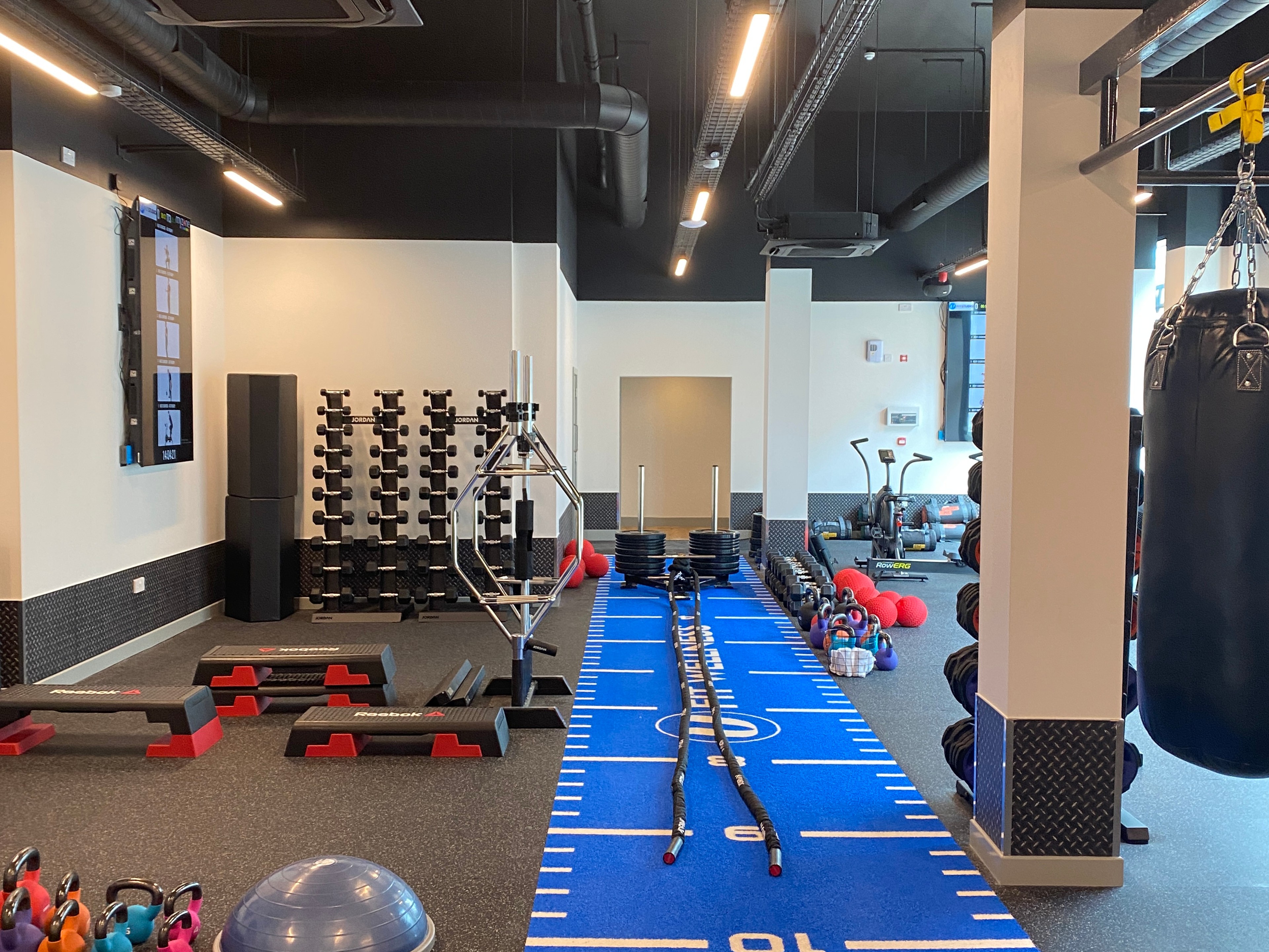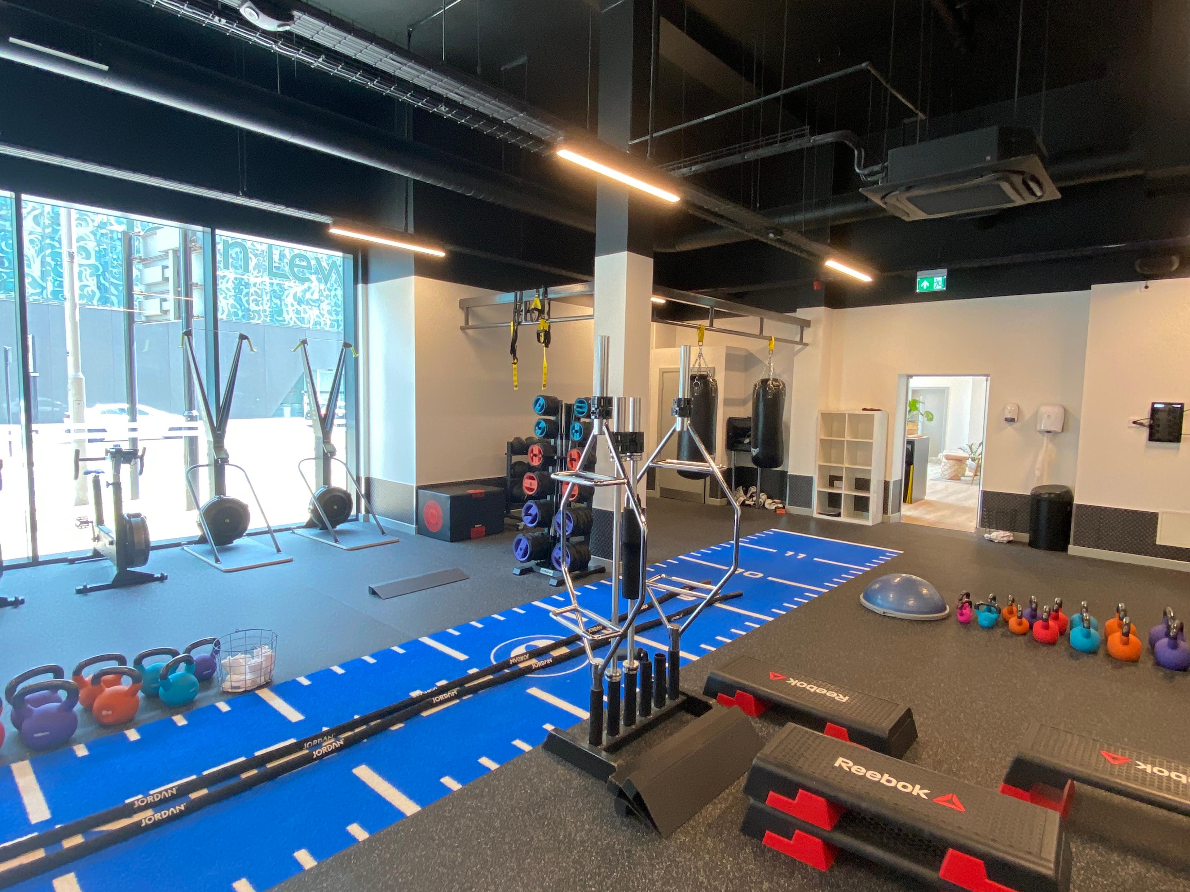Gym Concepts carried out a gym fit out for U-Fit for their new premises in an empty retail unit on the ground floor of a new residential building on a busy high street in Leicester. The building was fitted out with acoustic mitigation works to comply with acoustic requirements for the residents above. We installed new bathrooms, new above ground drainage, new partitions, wall linings, mechanical & electrical services, decoration and flooring all to the clients required specification.