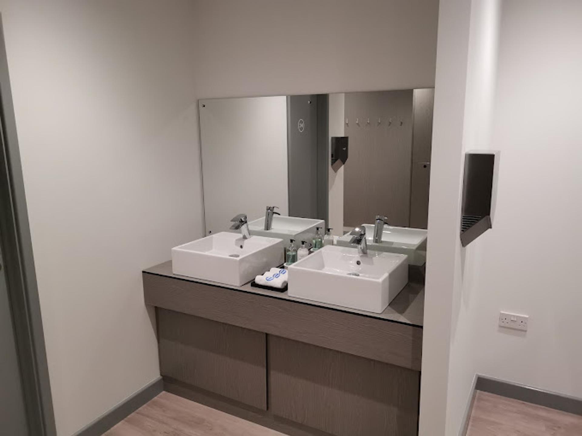 Decorative Finishes –Black, white, grey paintwork, Metro wall tiles to bathrooms, ceramic floor tiles to bathrooms, bespoke branded joinery items including bathroom vanities, lockers and reception desk.